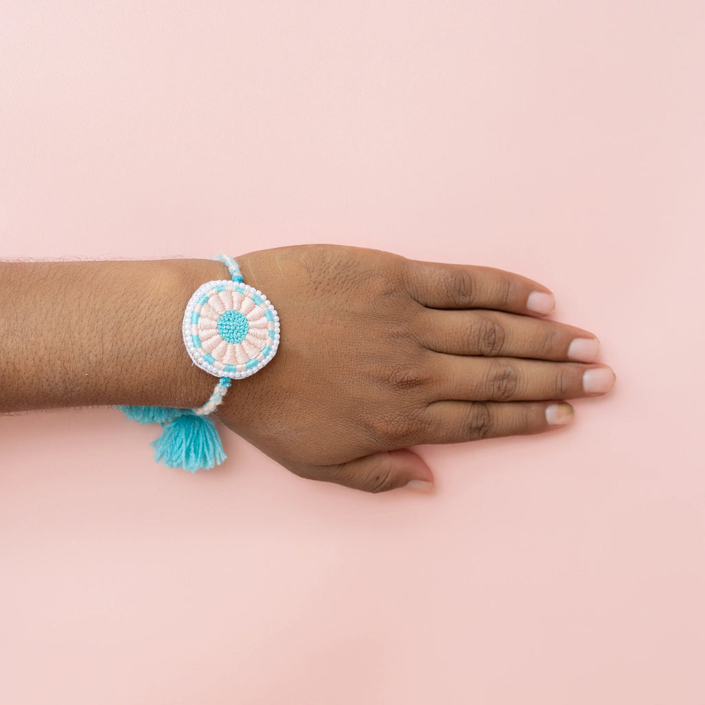 Bhai Peach Blue Beaded Rakhi