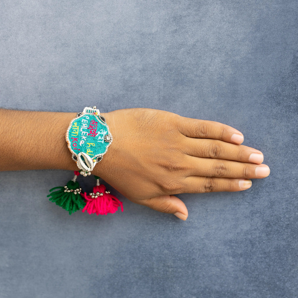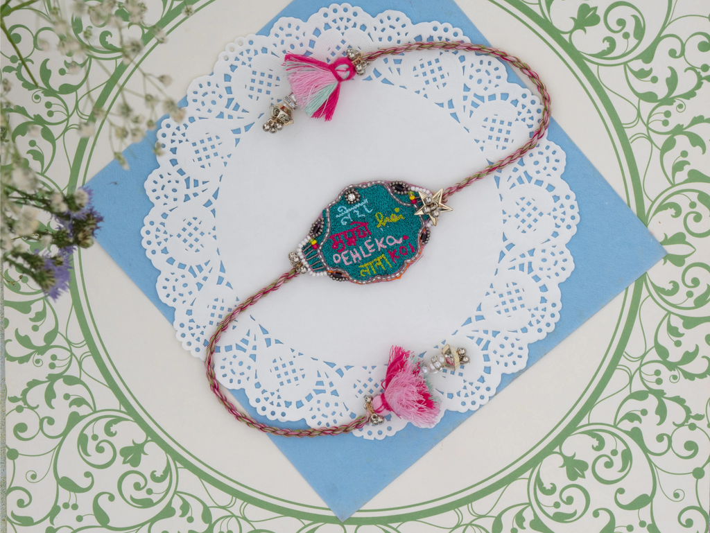 Each piece is meticulously crafted using intricate hand embroidery techniques on a textile base.