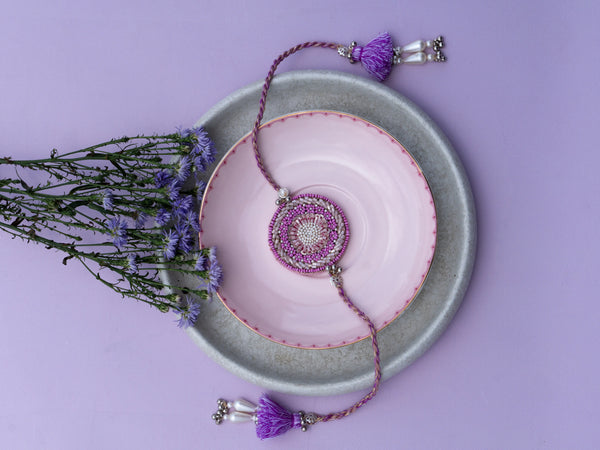 This Rakhi exudes grace and calm with its soft lilac beads forming a balanced circular design. Ideal for a brother who values subtlety and elegance, the Rakhi reflects peace, loyalty, and harmony—the true essence of...