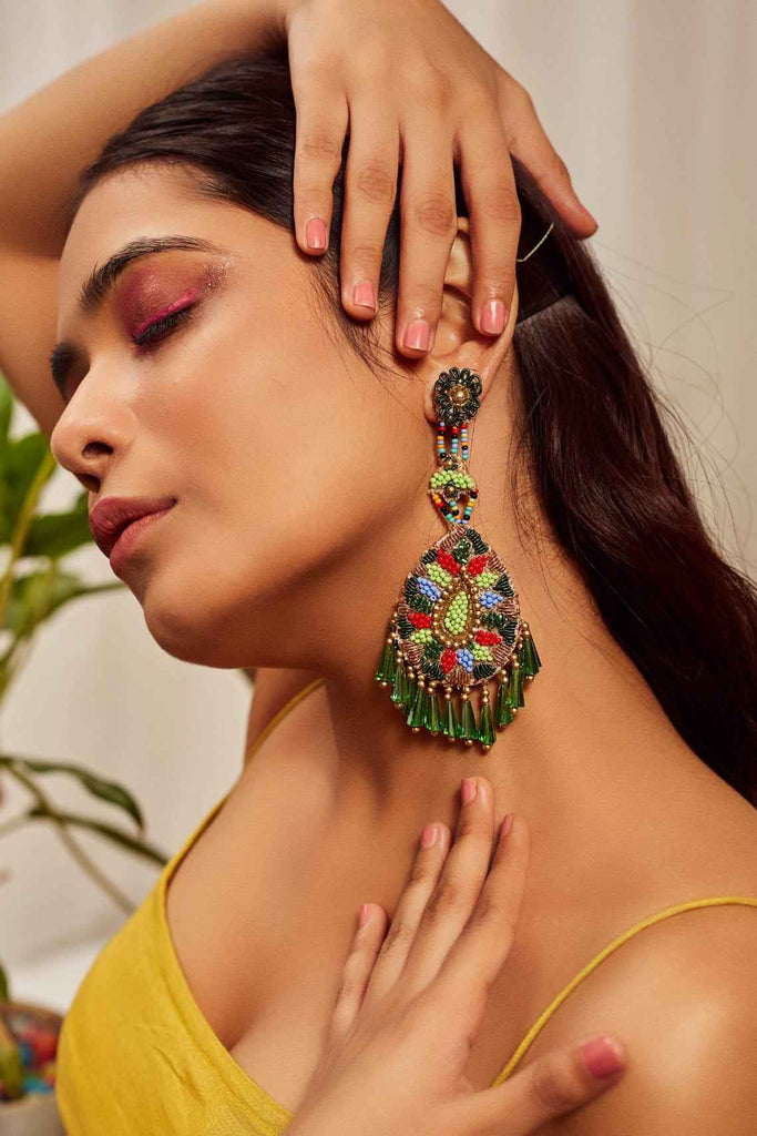 Each piece is meticulously crafted using intricate hand embroidery techniques on a textile base.