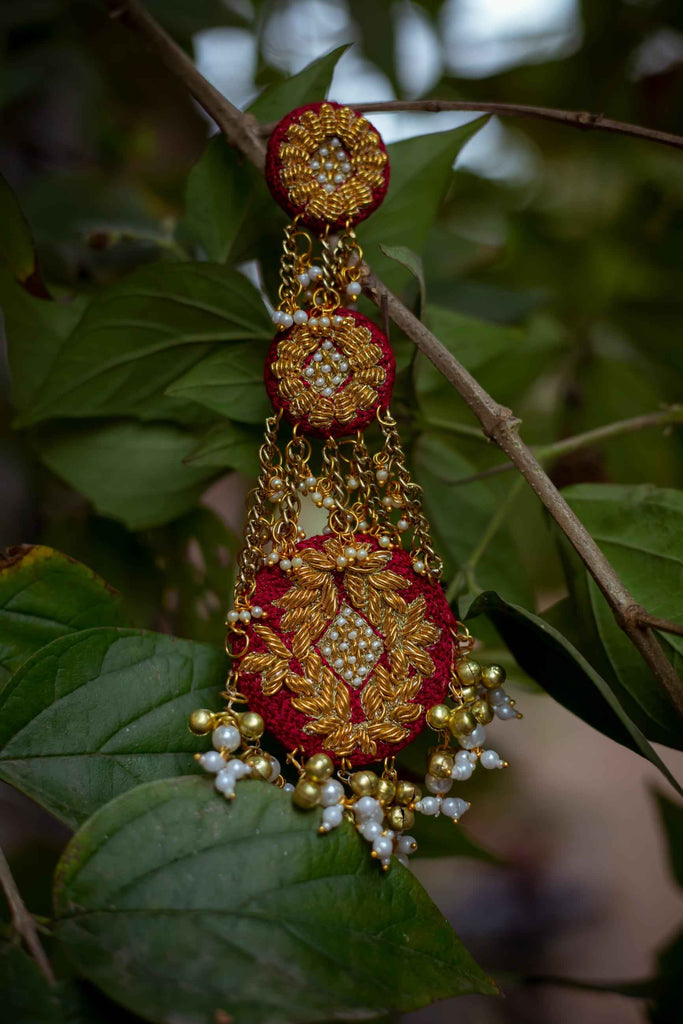 Each piece is meticulously crafted using intricate hand embroidery techniques on a textile base.