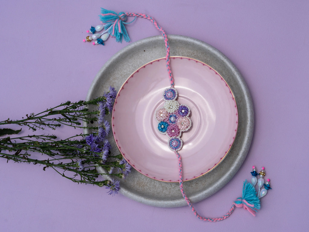 Each piece is meticulously crafted using intricate hand embroidery techniques on a textile base.