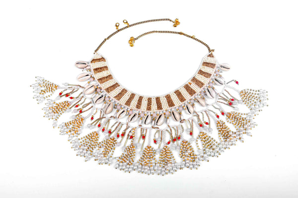Featuringa gold & white finish choker Necklaces, shop-by-style, shop-by-vibe, Oceanic studded with pearls ,Shells,chid in set.