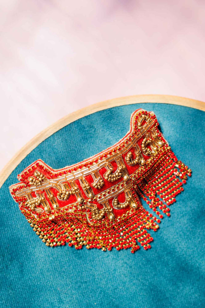 Each piece is meticulously crafted using intricate hand embroidery techniques on a textile base.