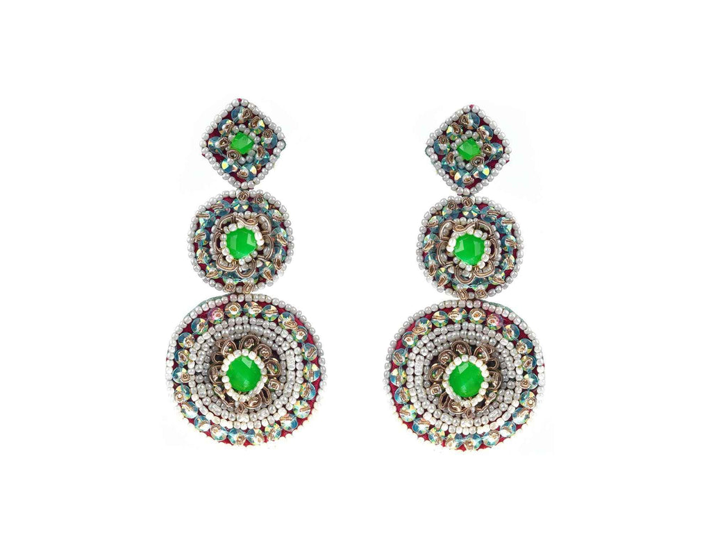 Each piece is meticulously crafted using intricate hand embroidery techniques on a textile base.
