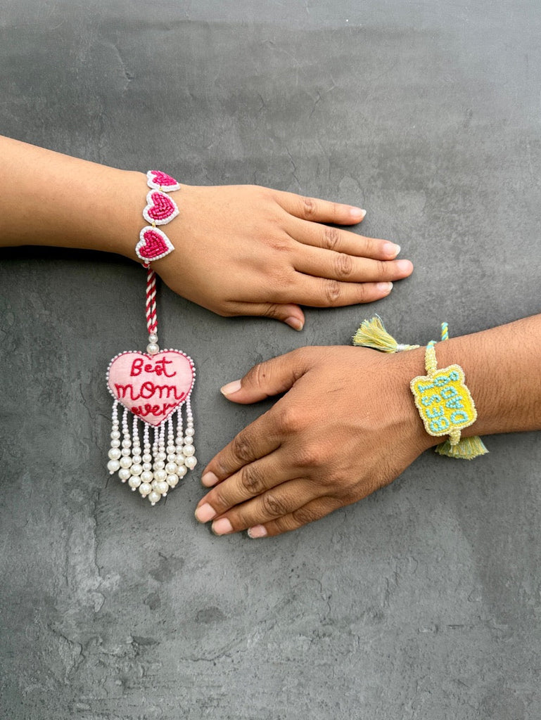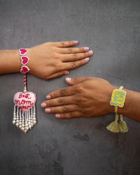 Each piece is meticulously crafted using intricate hand embroidery techniques on a textile base.