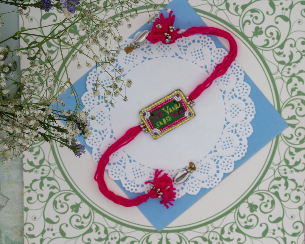Each piece is meticulously crafted using intricate hand embroidery techniques on a textile base.