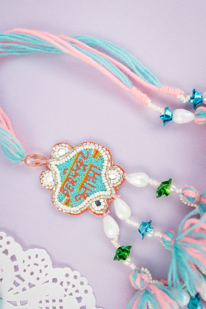 Each piece is meticulously crafted using intricate hand embroidery techniques on a textile base.
